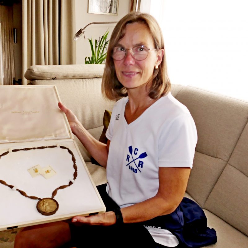 Rastatterin hält eine Goldmedaille des Ratzeburger Goldachters in Ehren Erinnerungen .